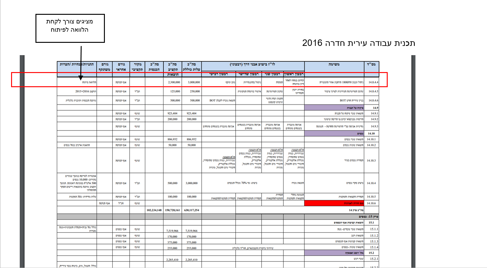 העמוד הרלוונטי מתכנית העבודה 2016